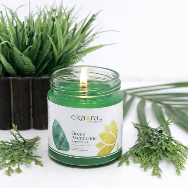 Infused with the powerful essence of Green Aventurine, this candle helps awaken inner strength, courage, and self-belief with every glow.
